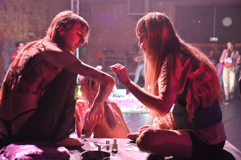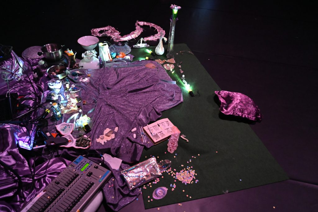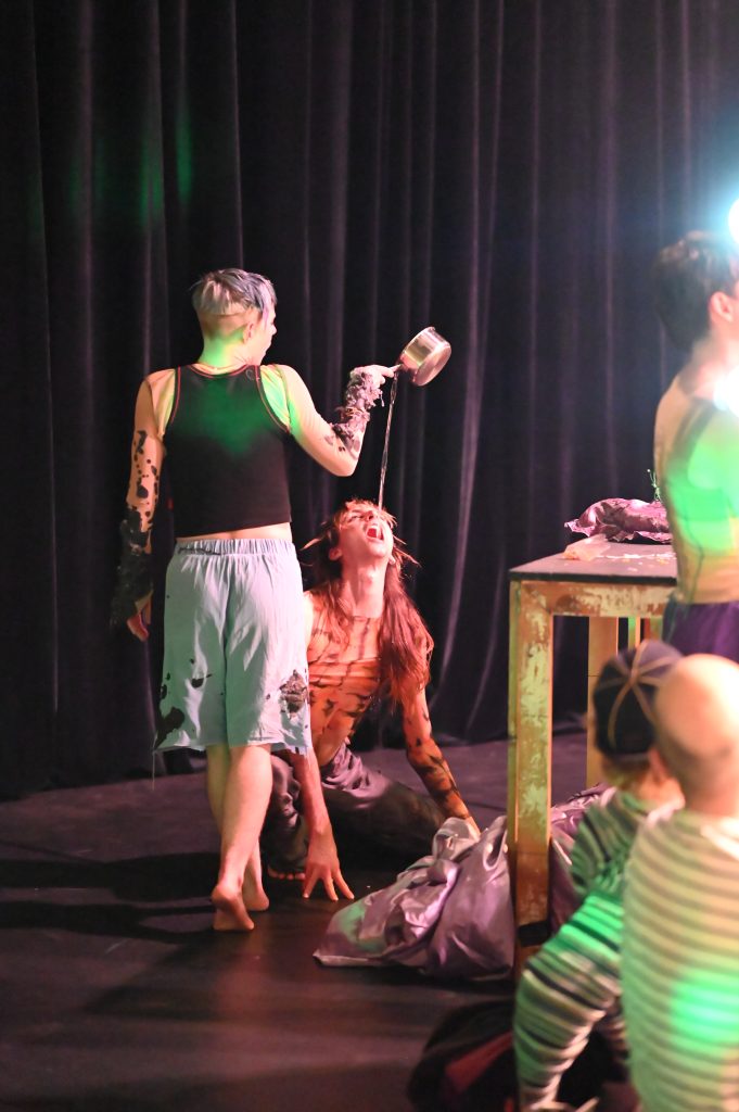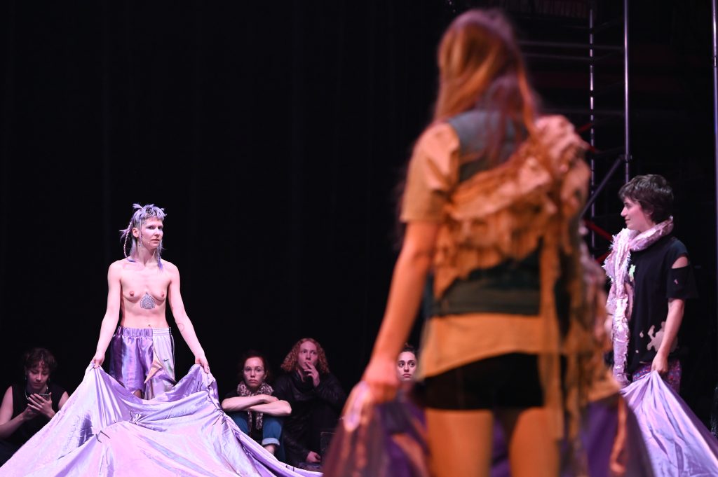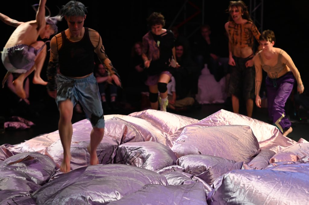 La recherche prend sa source dans le concept de symbiose en biologie et les propositions de queerféminismes spéculatifs formulées par Donna Haraway. La pièce aborde aussi l’adolescence, ses transitions et fantasmes ; l’individualité dans des dynamiques collectives ; l’écoute retrouvée, l’écologie, le recyclage ; la beauté des corps queer et trans.